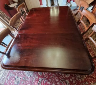 A Victorian pull out mahogany dining table with three leaves to seat 12, chairs not included, 4ft 62 wide x approx 10ft extended.
