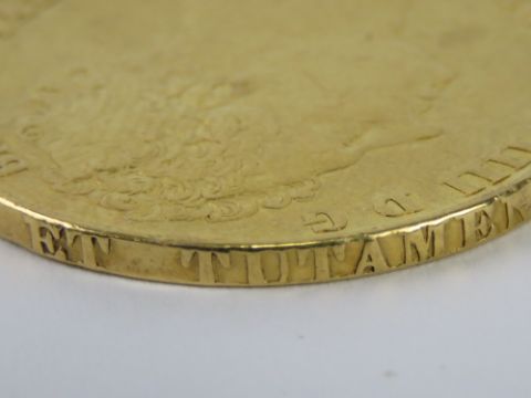 A 22ct gold George IV double sovereign dated 1823, initials B.P. to upper right of exergue for engraver Benedetto Pistrucci, edge engraved in raised letters DECUS ET TUTAMEN. ANNO.... (REGNI IV - worn). In protective case.
