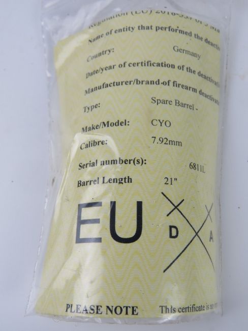A deactivated MG42 Spare Barrel. With certificate.