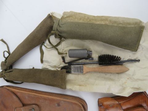 Three Skorpion smg sets, includes smg holster, magazine pouch and cleaning kit.