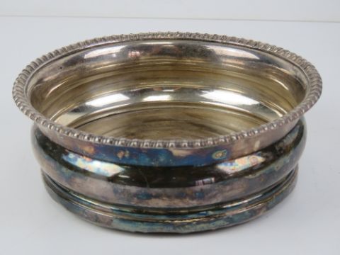 Two silver plated wine coasters, 12cm and 14.5cm dia respectively.