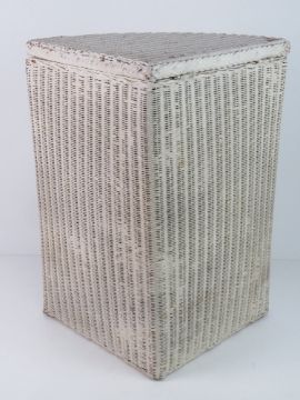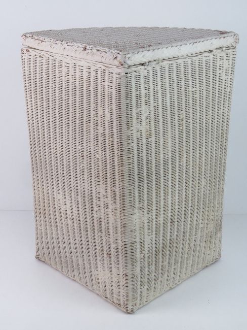 A Lloyd Loom style wicker basket, painted white.