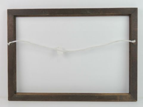 Unusual Art Deco Frame - an Oak varnished frame with stark two corner pokerwork decoration, 1 1/4 inches ( 3.175 cm) wide, to fit 19 3/8 x 13 1/4 inches ( 48.26 x 33.655 cm)