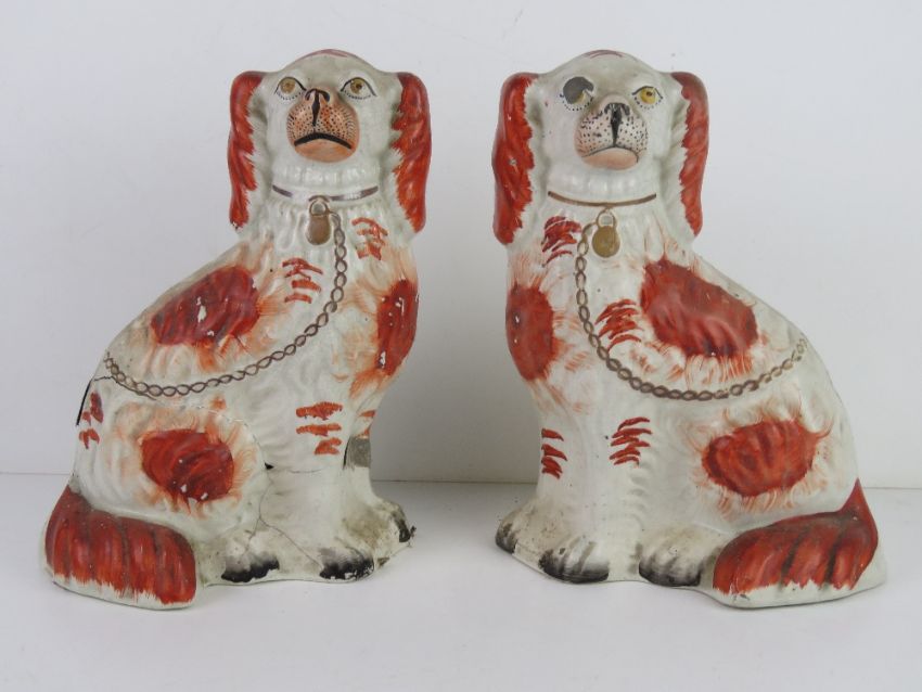 A pair of Staffordshire Spaniel figurines, a/f.