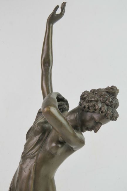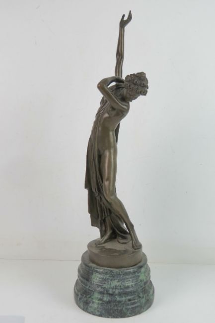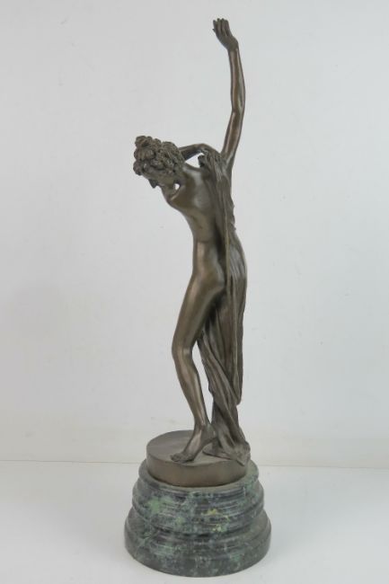 A contemporary bronze of a partially dressed female in the classical style raised over serpentine base, 57cm high.