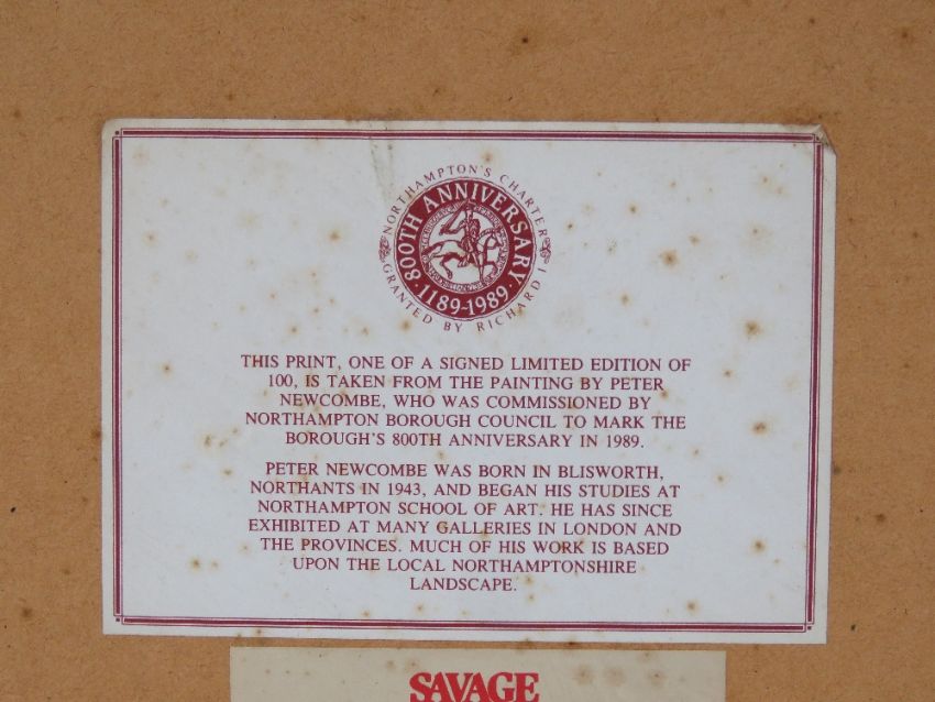 Peter Newcombe, signed limited edition print '800th Anniversary of Northamptons Charter', 72 of 100, signed in pencil lower right, sight size 55.5 x 41.5cm, framed and mounted.