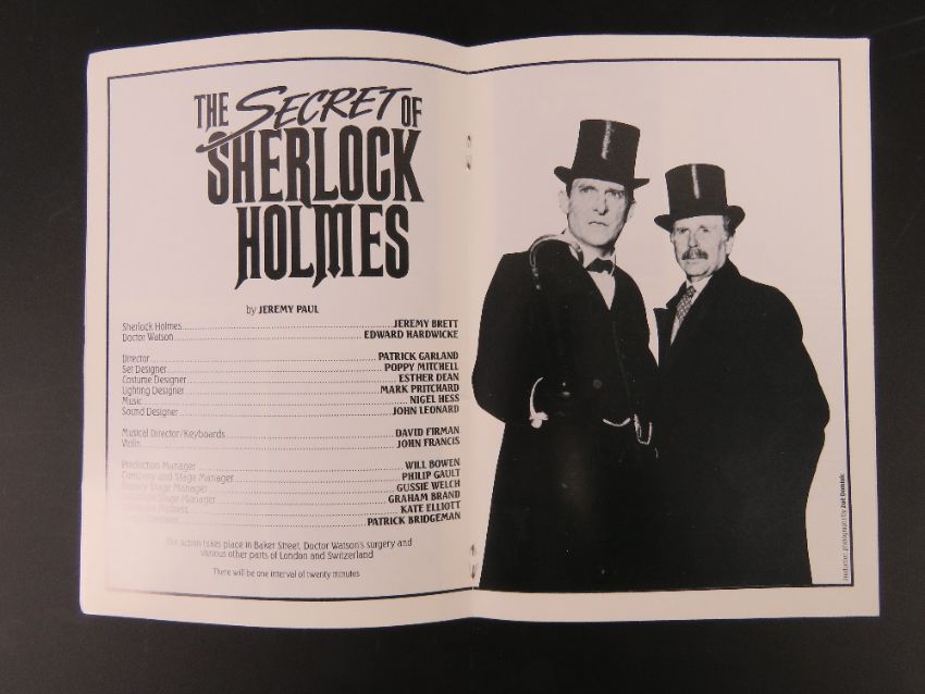 Theatre programmes inc The Lovebirds starring Jean Aubrey as Faye Sellars, The Lion King, The Secret of Sherlock Holmes starring Jeremy Brett and Edward Hardwicke, etc. Five items. Also a collection of DreamWorks The Prince of Egypt cast photos.