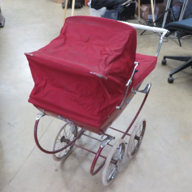 A Silver Cross dolls pram in red.