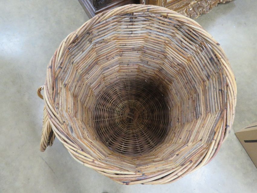 A large wickerwork lidded laundry hamper 53cm diameter.