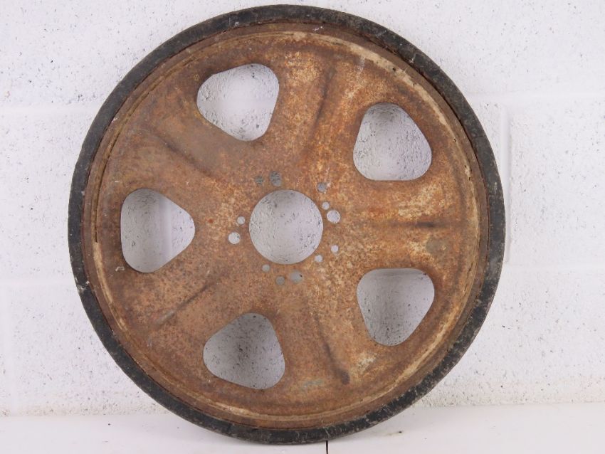 A WWII German SD.Kfz. 251 track wheel with some original rubber 'tyre'.
