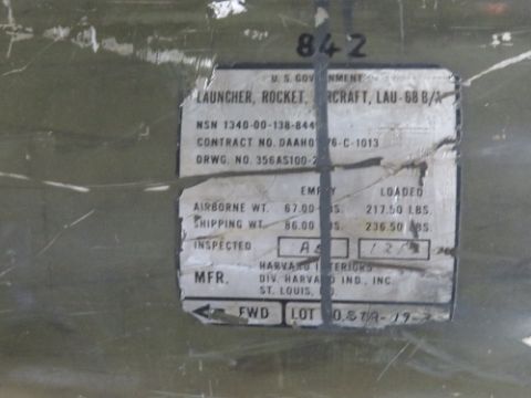 A deactivated American Multi Tube Rocket Launcher. 2.75 inch LAU 68 made by Harbard in USA. With certificate.