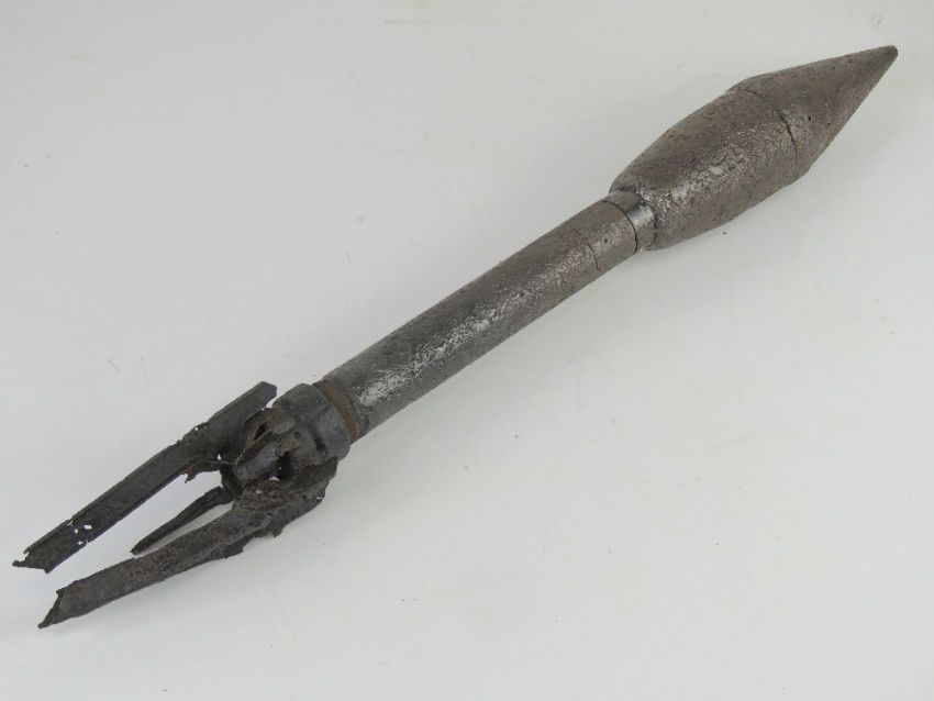 An inert WW2 German Panzerschreck rocket, in relic condition. head unscrews.
