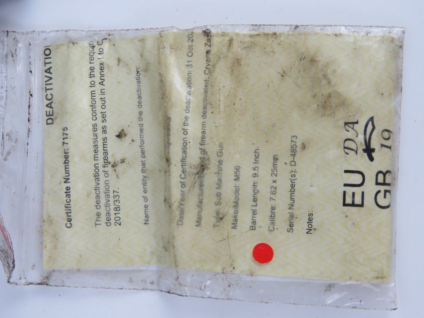 A deactivated M56 SMG. With certificate.