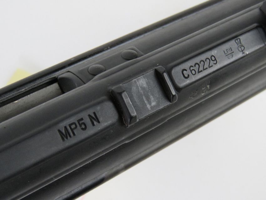 A deactivated HK MP5A3 9mm Sub Machine Gun. German Heckler and Koch manufacture. Latest EU Spec, with fully moving bolt, moving trigger and safety and removable magazine. With certificate.
