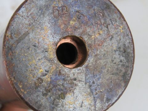 An inert WWII Russian 45mm HE Frag shell, the case is dated 40, the shell and head are semi relic, the head can be removed and the fuze unscrews.