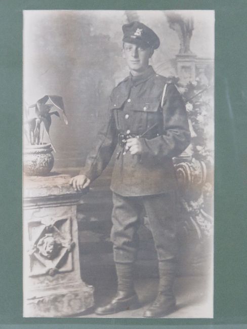 A print from a photograph of an early 20th century British soldier.