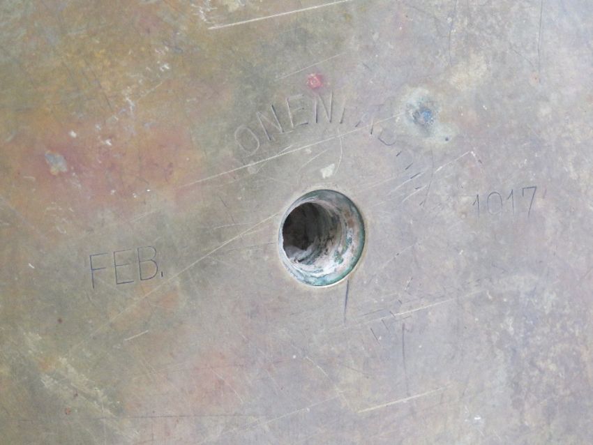 An inert WWI German 21cm Shell case container and 1917 shell.