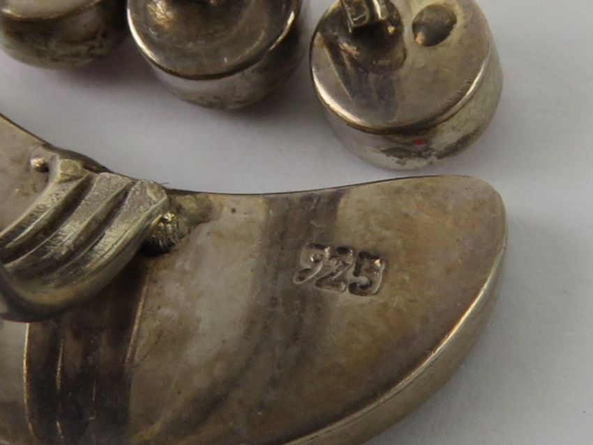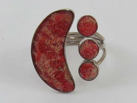 A handmade crescent moon and cabachon design ring stamped 925, size T.