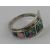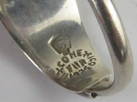 A silver abstract design ring having graduated Abalone shell panels upon, stamped 925, size R-S.