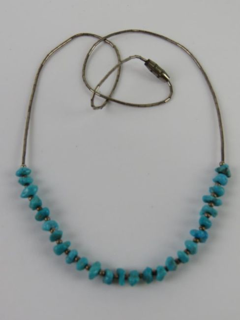 A Native American style turquoise beaded necklace.