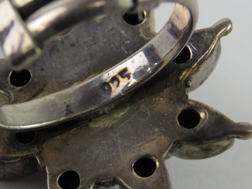 An adjustable silver ring of floral form approx size Q, stamped 925.