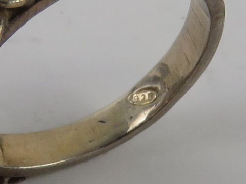A silver and green onyx ring in the Indo-Asian style, stamped 925, size P.
