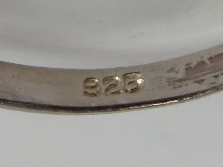 A silver ring having square cut purple stone, stamped 925, size U.