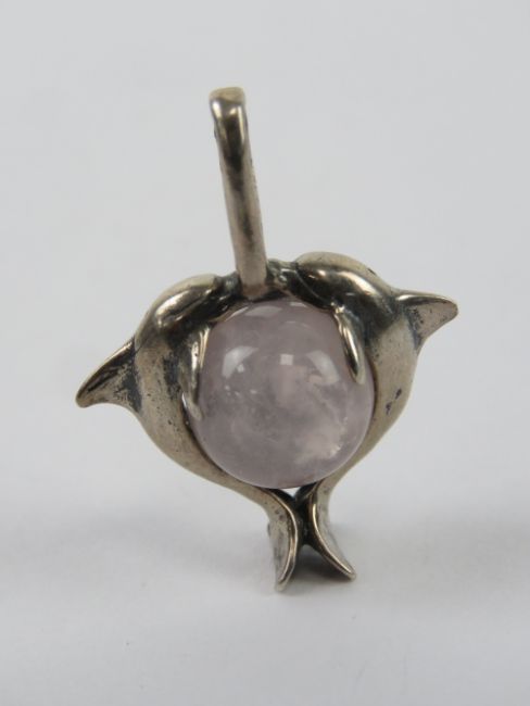 A dolphin and rose quartz pendant, 3cm in length.