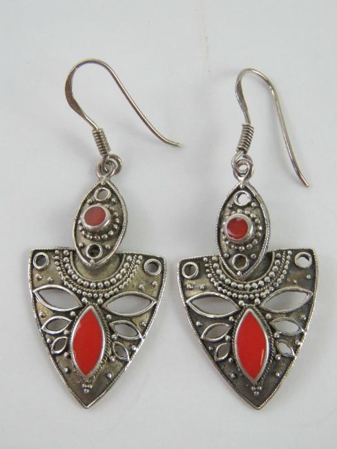 A pair of well made 925 silver articulated earrings, total drop approx 5cm on black velvet stand.