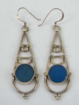 A pair of silver geometric earrings, stamped 925, 6.6cm drop.