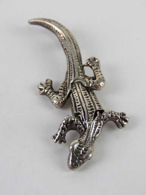 A pendant in the form of a ghekko having three articulated panels and measuring 3.5cm in length.