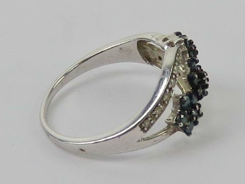 A contemporary silver cz set floral ring, stamped 925, size P-Q.