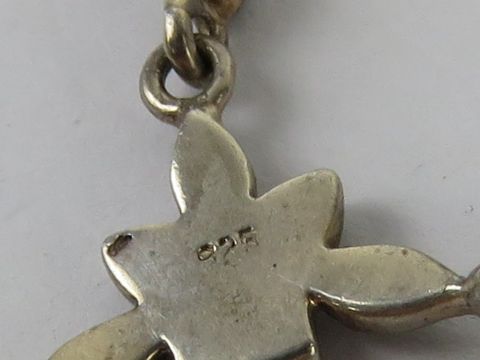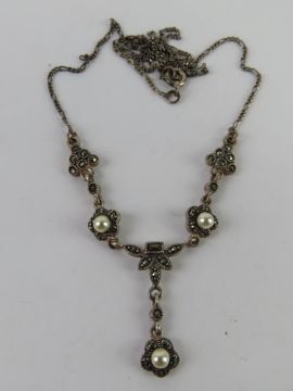 A silver marcasite and pearl articulated necklace, stamped 925 throughout,