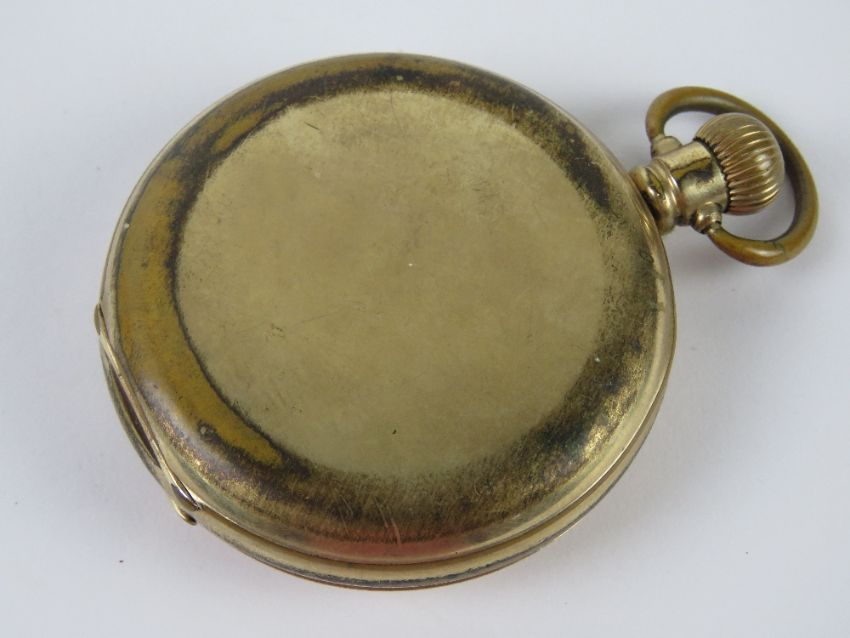 A gold plated half hunter pocket watch, the white enamel dial marked for Sigwarts Precision Lever.