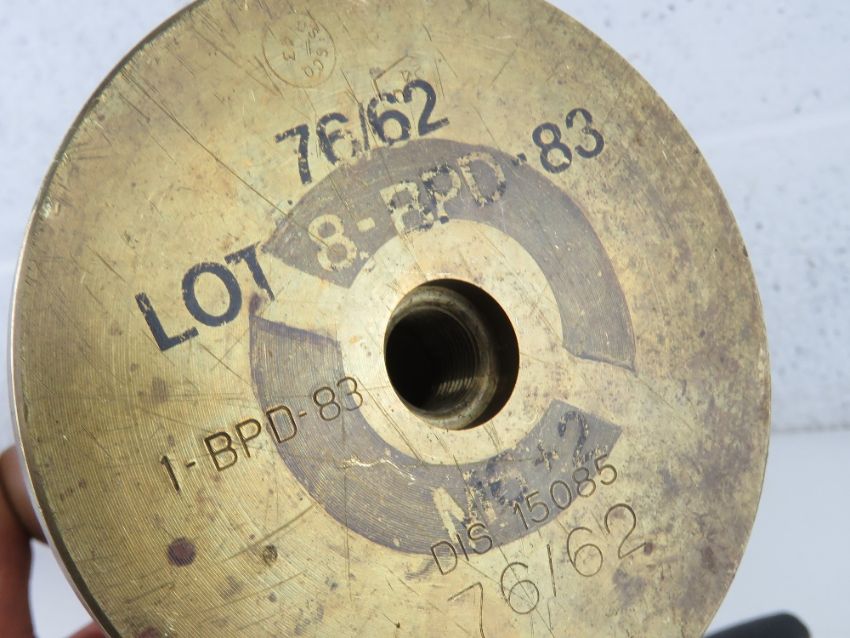An inert 76mm Malara Italian Naval projectile training round, repainted, original blue paint underneath. Approx. 92cm tall.