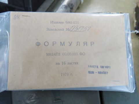 An inert Soviet 9M14 Malyutka missile in transit case.