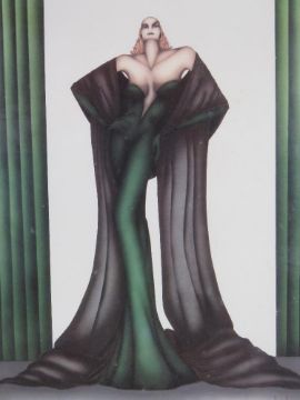A large signed art deco style print Woman in Green 51 x 63cm, framed and mounted, overall size 75.5 x 88cm.