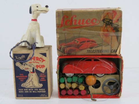 A Schuco Telesteering car in original box, box a/f, together with a Percy the Playful Pup in original box. Two items.