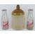 A salt glazed JKH Fowler Wine & Spirit Merchant Aylesbury stoneware jug standing 26.5cm inc cork together with two vintage glass milk bottles. Three items.