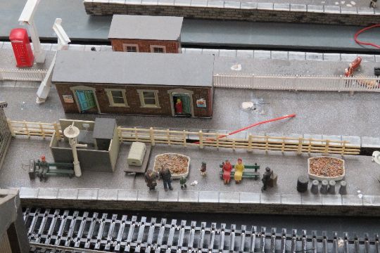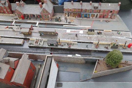 A quantity of model railway diorama makers buildings and part build diaramas including street sceens, platforms, figures, etc.