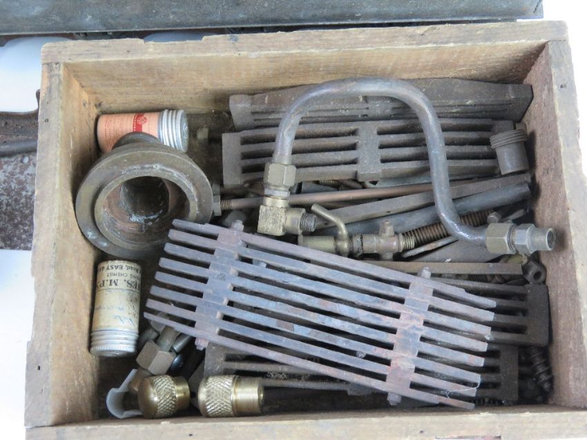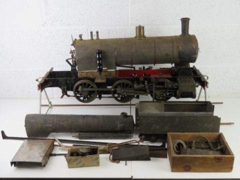 A quantity of model live steam engine components including 5" 2-2-2 bogie with part built locomotive.