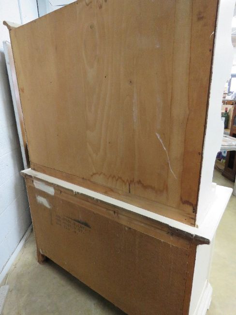 A 20th century cream painted Welsh dresser having twin shelves with pediment over, the base with drawers and doors, 133 x 54 x 185cm.