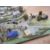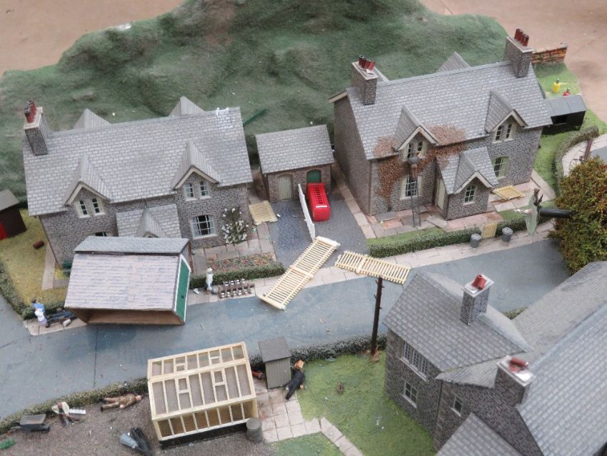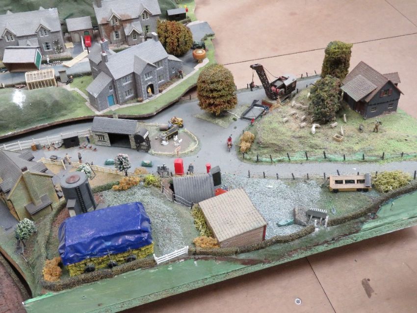 Two model village layouts including buildings, farm, church etc. In three sections.
