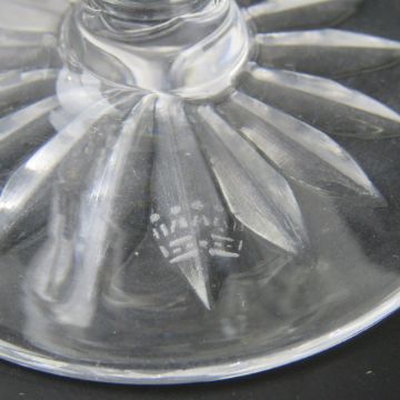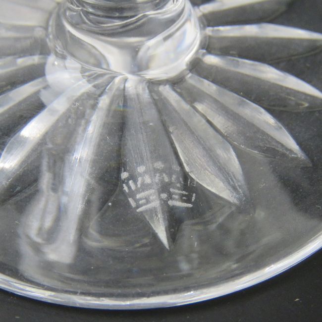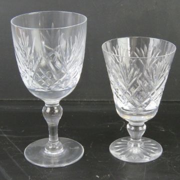 A pair of Thomas Webb lead crystal wine glasses together with a pair of short lead crystal wine glasses having unknown maker's mark upon. Four items.