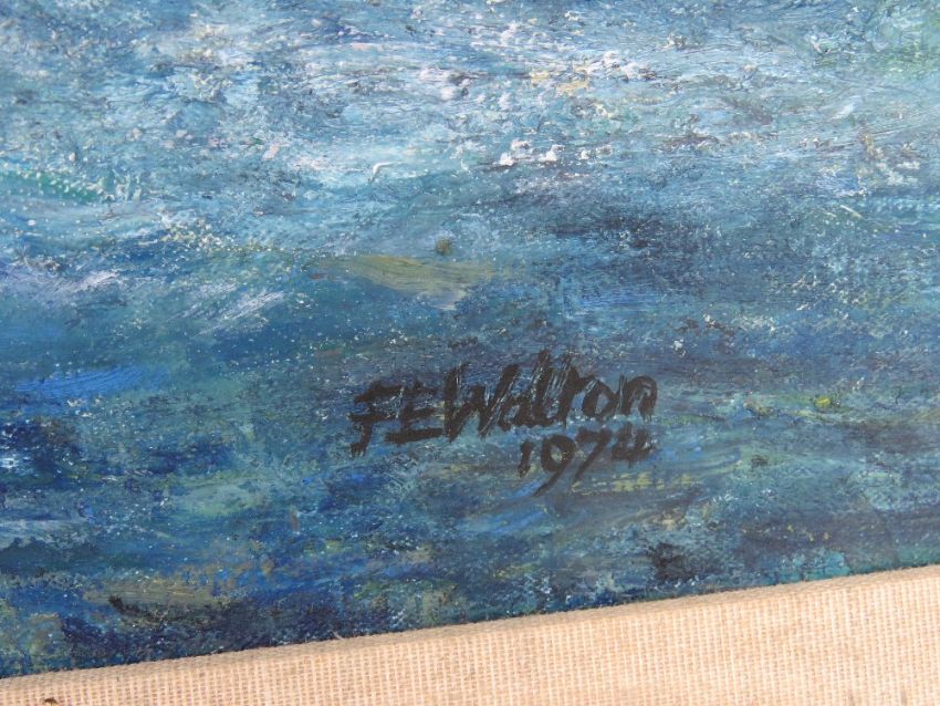 Acrylic on canvas 'Yatch race in the Solent off Isle of Wight' by F E Walton and dated 1974, sight size 75 x 50cm, framed 86 x 61cm.