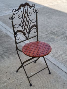 A pair of garden bistro chairs with pair of graduated sunflower tables.