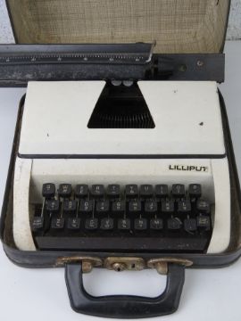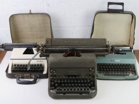 Three vintage typewriters inc Remington Rand, Olivetti and Lilliput.