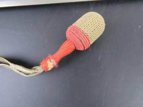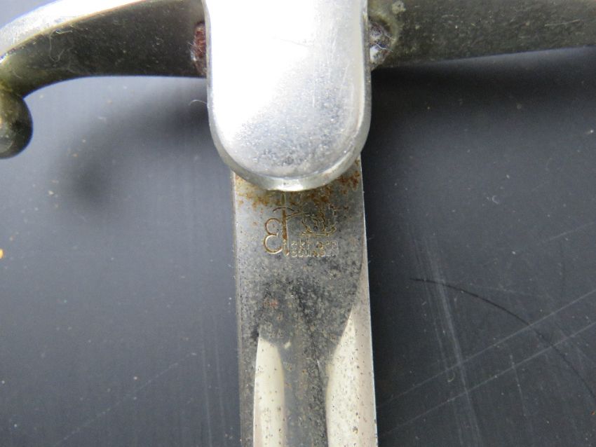 A WWII German Dove Head NCO'S Dress Sword, without scabbard. The blade marked Eickhorn, Solingen, with a squirrel motif. Also attached an original Portepee, with red colouration to the slide, stem and crown section, regulation 9 ring binding on the crown. This colour possibly denotes an Artillery affiliation.