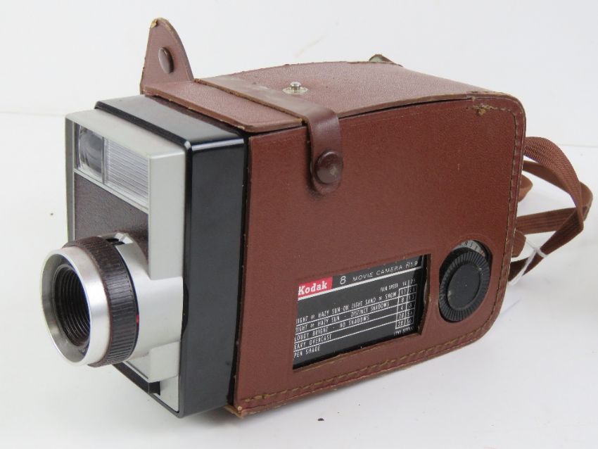 Two vintage cameras; Kodak 8 movie camera f/1.9, and a Kodak Six-20 'Brownie' E.