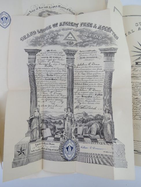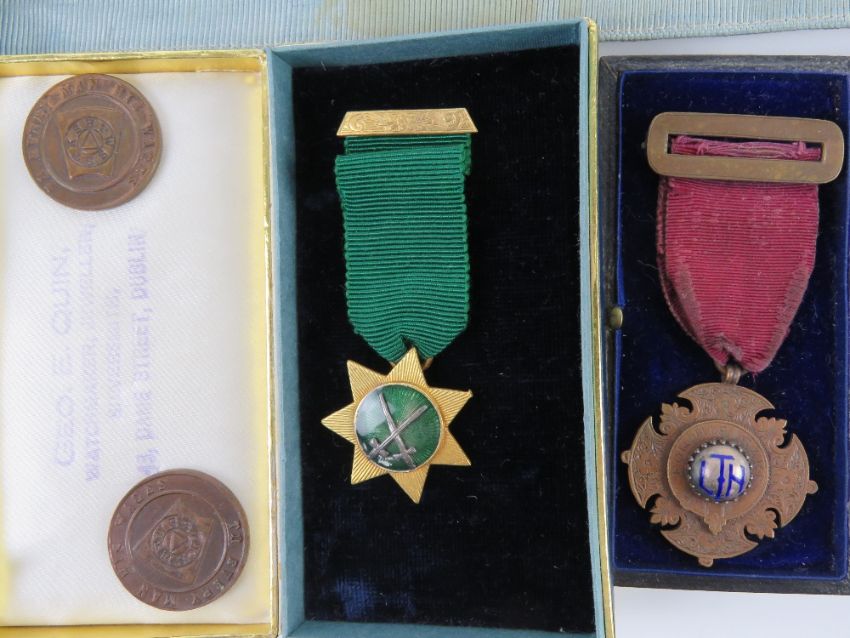 Masonic; Ruby Masonic Lodge Dublin medals and other Masonic items including paperwork and apron.